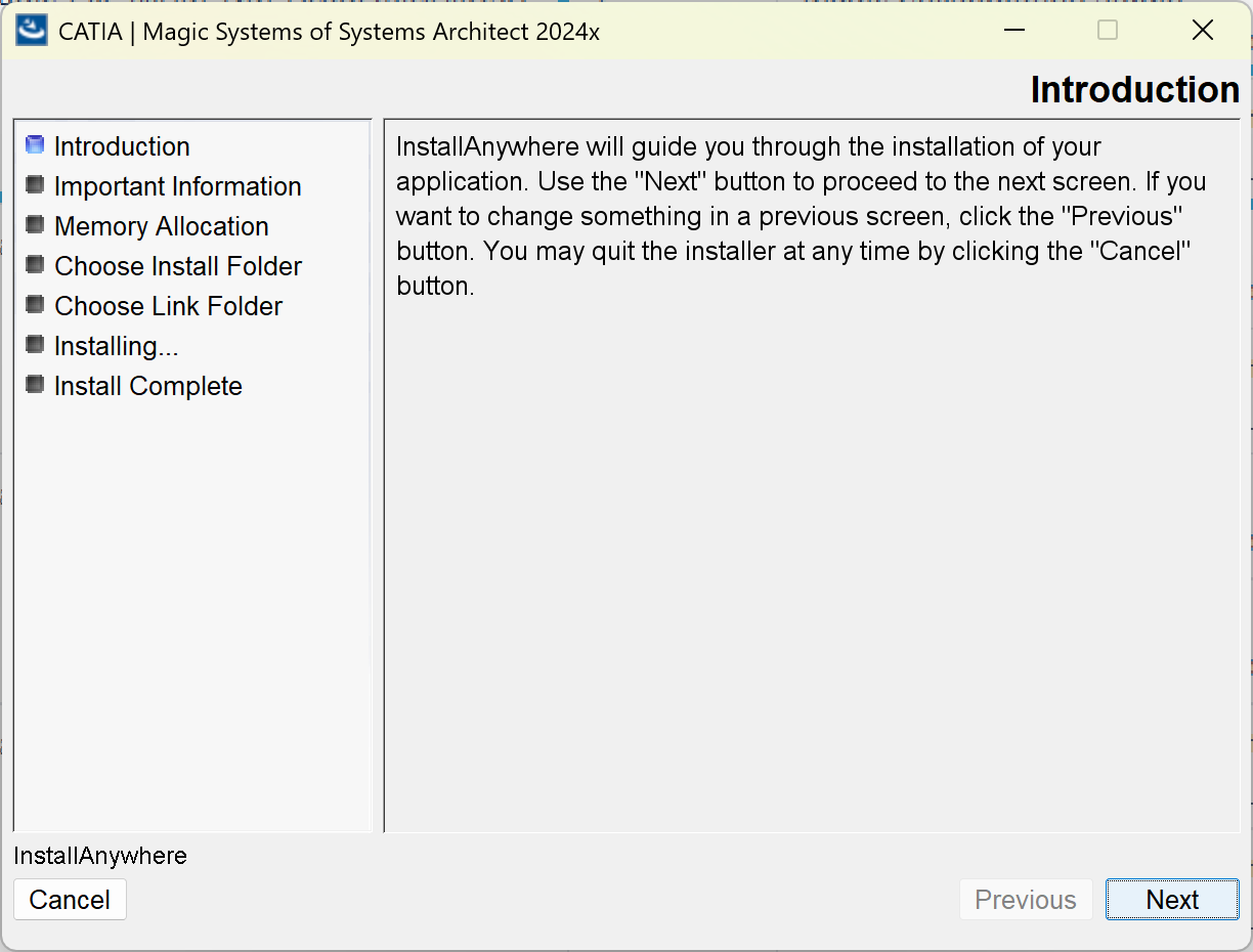 Double-click Magic_Systems_of_Systems_Architect_2024x_win64.exe to start the installation.